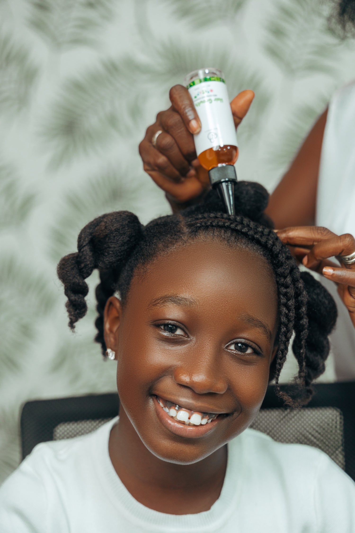 This collection formulated for kid's hair includes shampoo, conditioner, hair butter and hair growth oil.